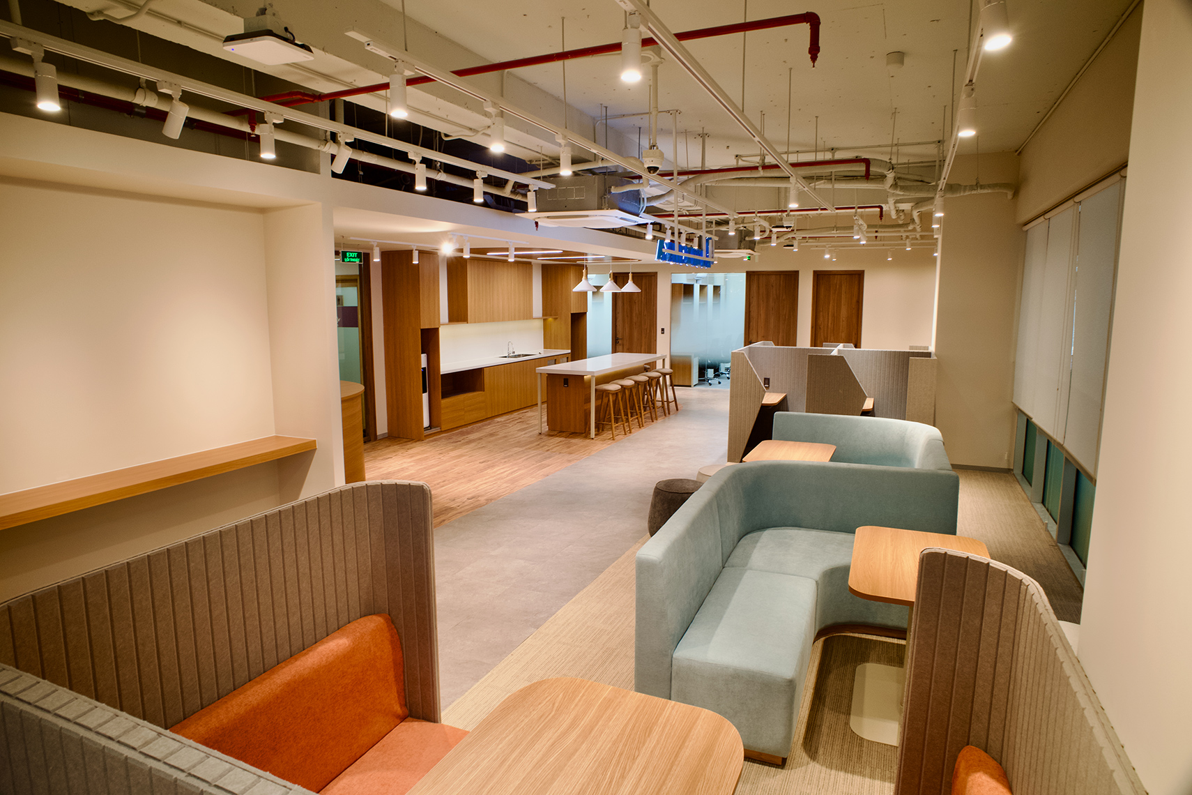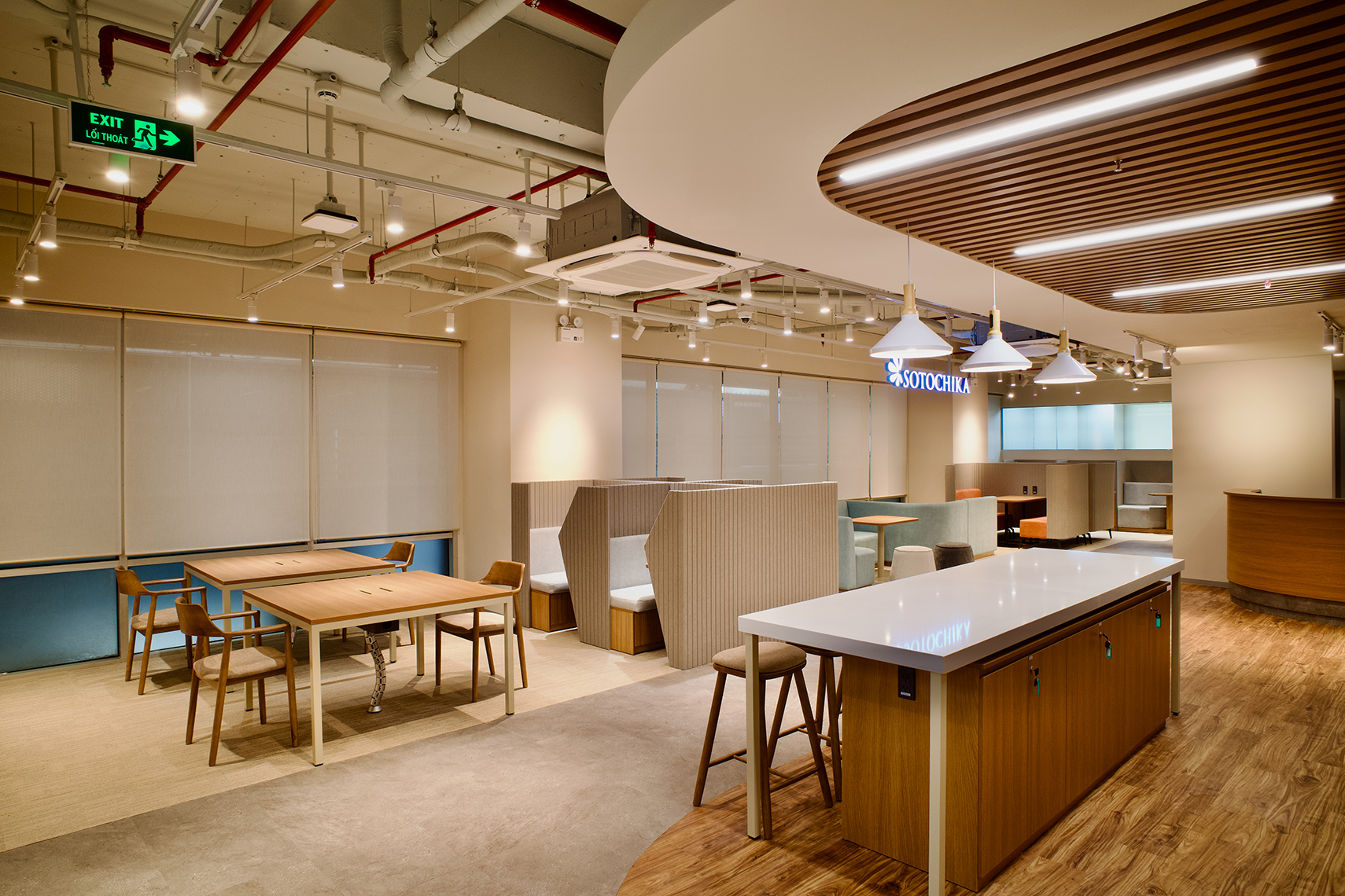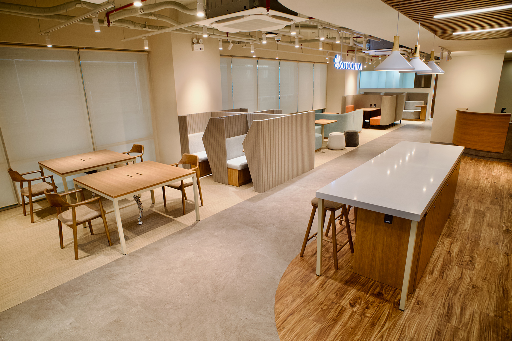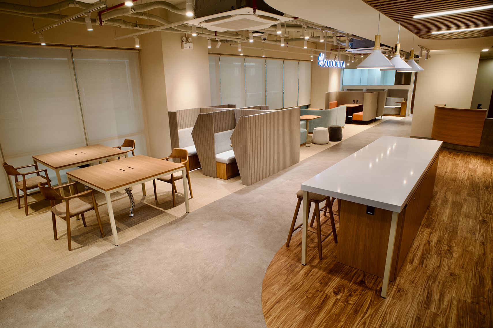 オープンスペース、個人用ブース、オンラインブースなど、